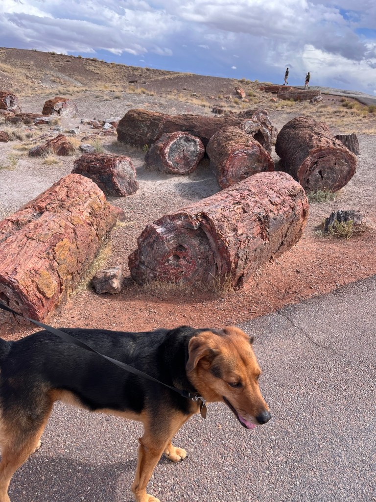 On our way further west we went through Petrified Forest NP which was pretty amazing. That park was easy to drive through and had short trails where you could see lots of huge petrified logs. It was really impressive… until you left the park and saw a petrified wood store where logs were stacked up on top of one another like cord wood!